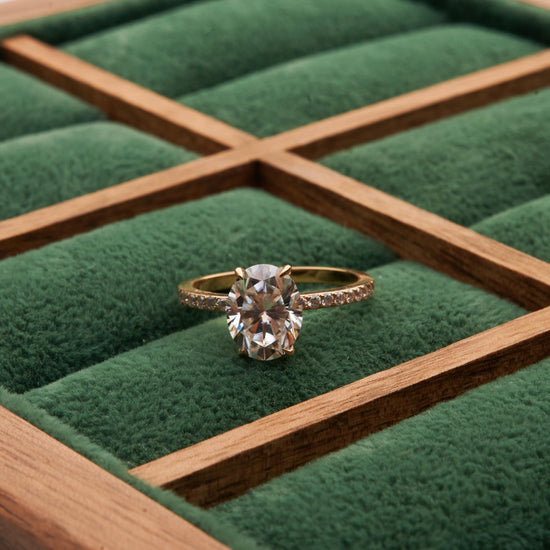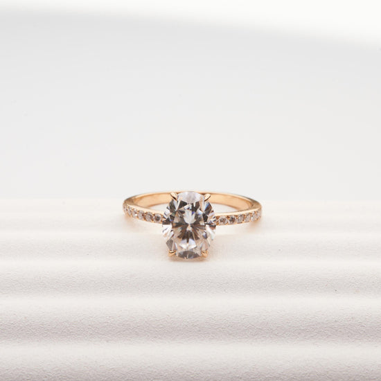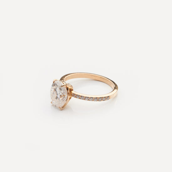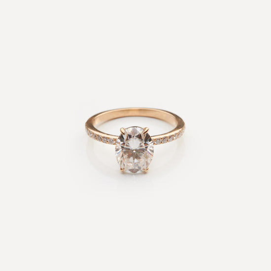 Вставки: діамант огранки Oval 2,0 ct E/VS ( сертифікат GIA/IGI ); діаманти 0,15 ct E/VS